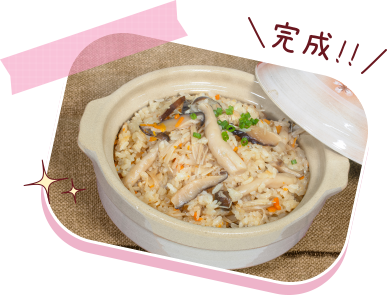 - 釜に洗った米と1合分の水を入れ、30分浸水させた後、炊き上げる。