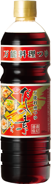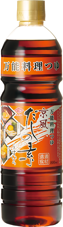 本醸造丸大豆こいくち醤油をベースに、かつお節・こんぶの風味をいかした、こいいろ濃縮タイプのだしの素です。まろやかでコクのある上品な味と風味は、和・洋・中あらゆる料理に幅広くご使用いただけます。